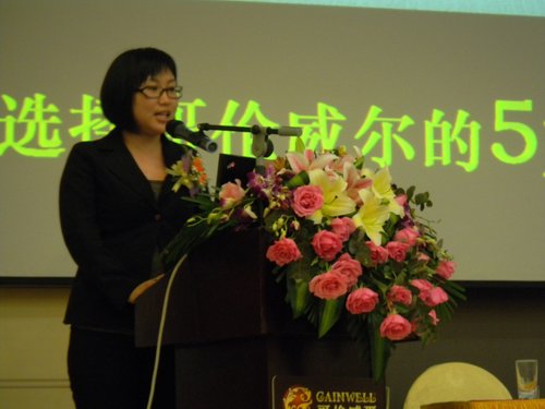 上圖:國富縱橫美盈項目負責人田女士作哥倫威爾品牌推介