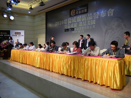 3月15日,廣東省商標GAINWELL哥倫威爾強勢推出古典小美式系列——亞美利加,在業內驚起來一片震動。在廣東中山舉行的2010哥倫威爾新品發布會上,美盈實業總裁黎偉良和銷售總監葉文超對哥倫威爾品牌和新產品做了詳細闡述,北京國富縱橫咨詢公司總裁趙龍博士、簡愛家居總裁羅輯莉、中國品牌營銷學會秘書長李易洲等嘉賓出席祝賀,近兩百名經銷商和十幾家媒體參加本次活動,現場簽約經銷商達五十多家,一炮而紅。
