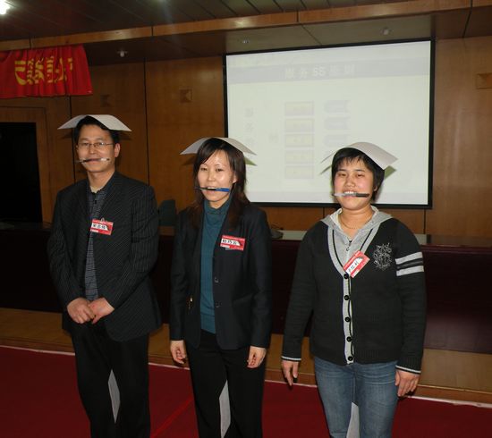 上圖:情境式培訓(xùn)的家具商務(wù)禮儀的演練